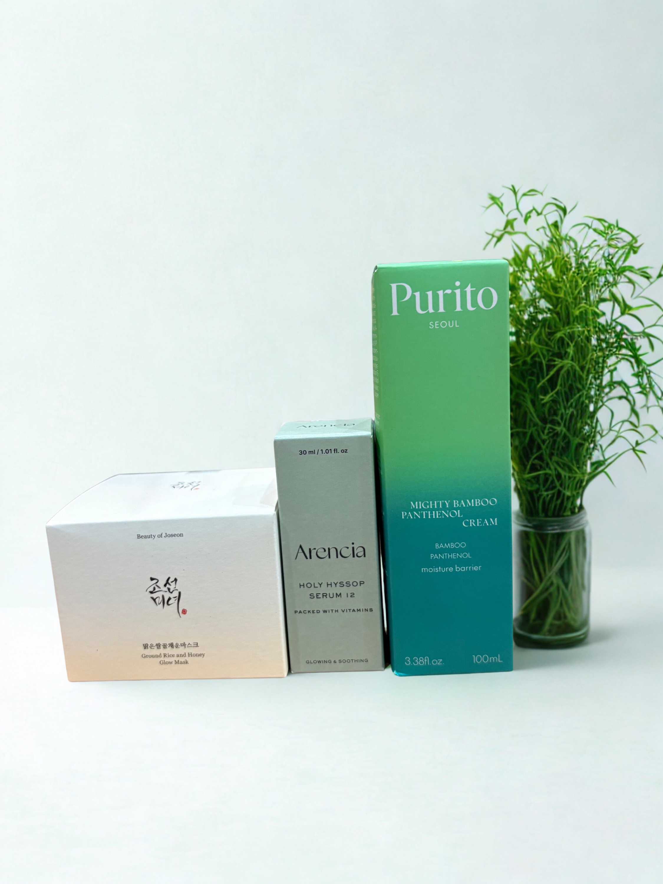 Beauty of Joseon Glow Mask + Arencia Serum + Purito Bamboo Panthenol Cream)